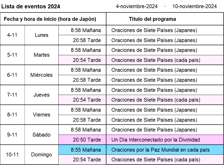 [Importante] Información sobre la Reunión de Oración Zoom del 4 noviembre de agosto (lun.) al 10 de noviembre (dom.) *Incluyendo información de YouTube