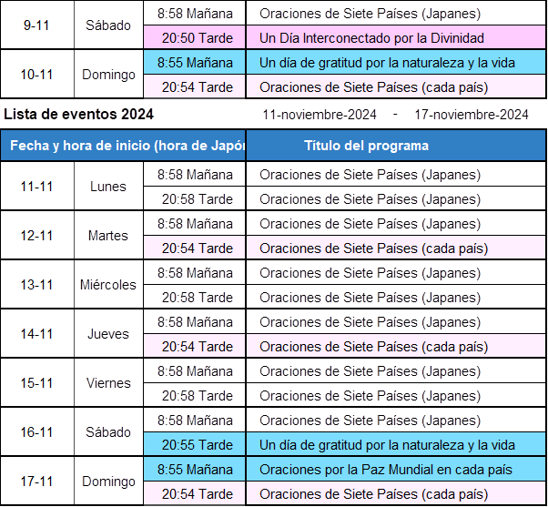 [Importante] Información sobre la Reunión de Oración Zoom del 11 noviembre de agosto (lun.) al 17 de noviembre (dom.) *Incluyendo información de YouTube